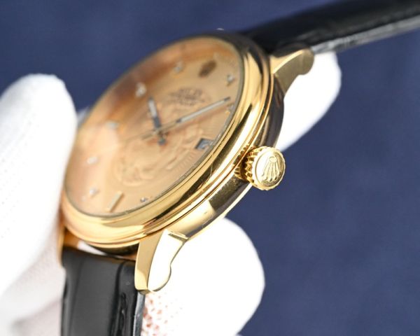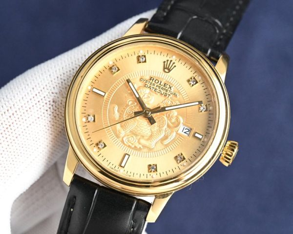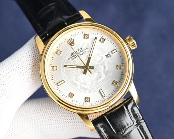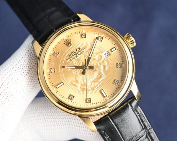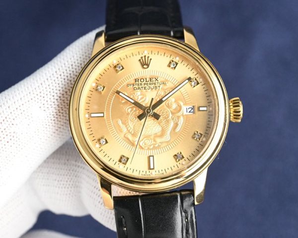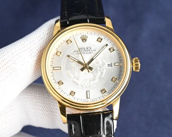 Best Edition With Swiss 8215 Movement Replica Rolex Datejust Yellow Gold with White/Yellow Gold Dial Italian Calfskin Leather Band Watch Rolex replica with correct engravings
