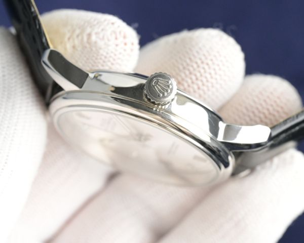 Rolex crown logo micro etched at 6 o'clock on the crystal.