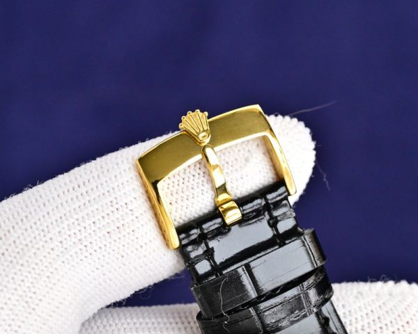 Best Edition With Swiss 3235 Movement Replica Rolex Datejust Yellow Gold with White/YG Dial Black Leather Band Watch