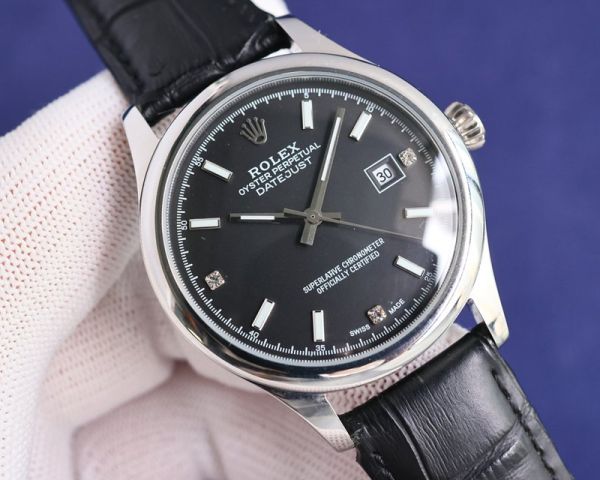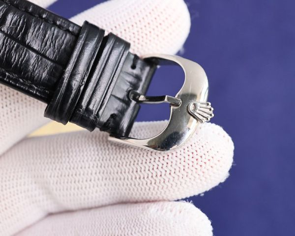 Black leather strap with excellent texture, suitable for both business and formal occasions.
