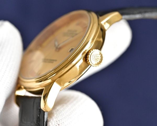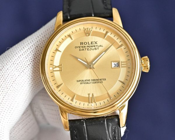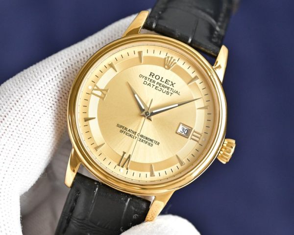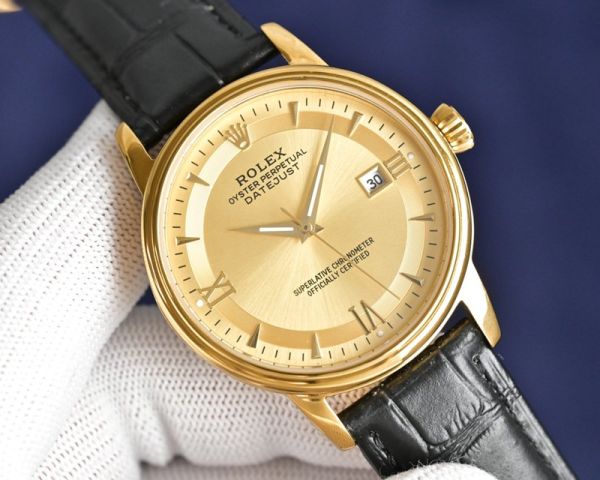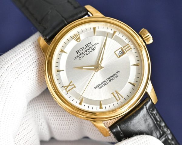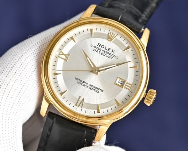 Rolex Datejust, featuring a gold case and white dial with Roman numeral hour markers that exude a strong vintage charm.
