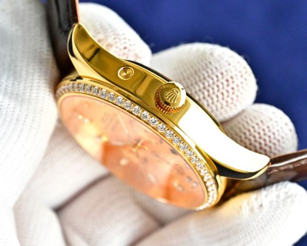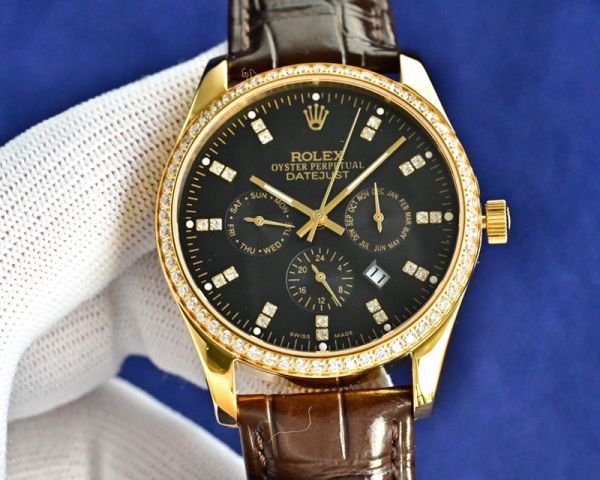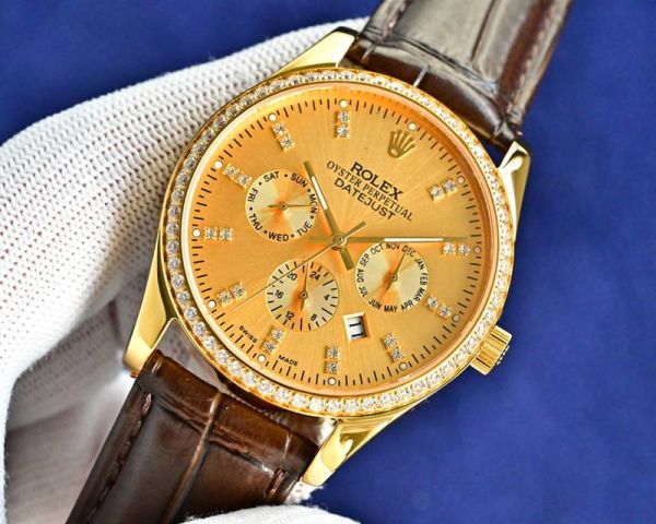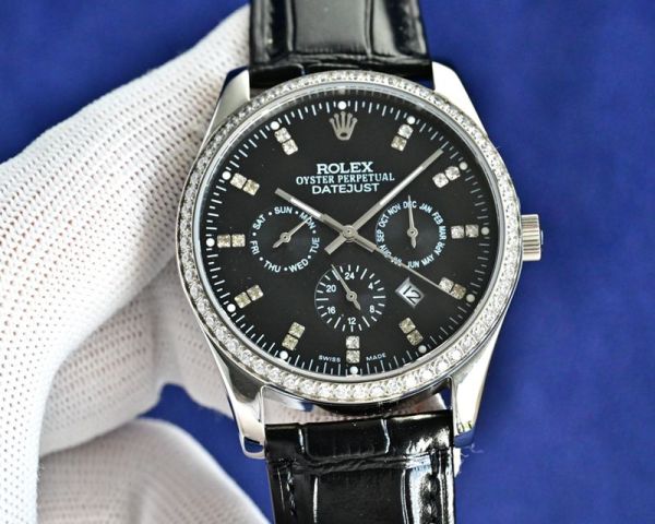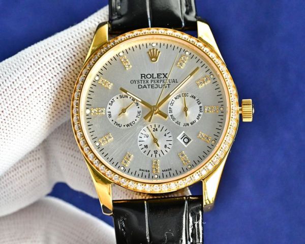Rolex Datejust watch with a diamond-set bezel, full of luxury! It features a silvery-white dial with diamond hour marker,and an automatic mechanical movement for precise timekeeping.