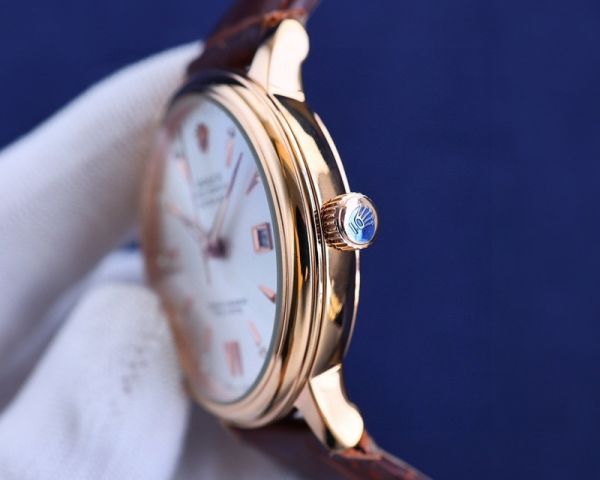 Best Edition With Citizen 8215 Movement Replica Rolex Datejust Rose/White Gold with White Dial Black/Brown Italian Calfskin Leather Band Watch