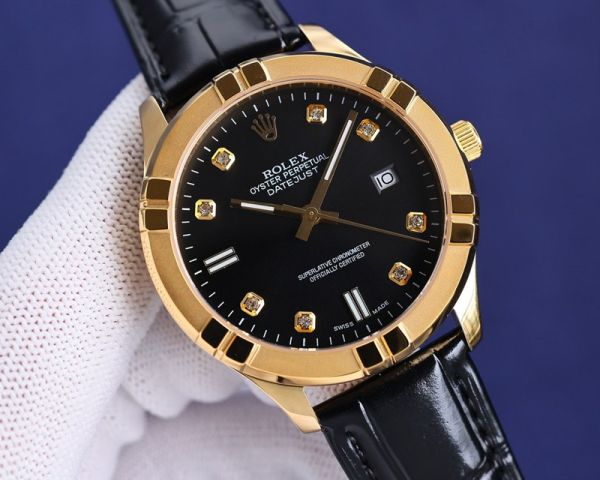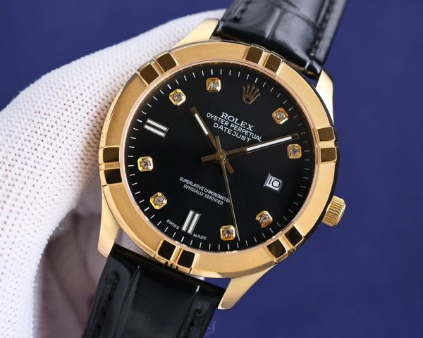 Best Edition With Imported 9015 Automatic Movement Replica Rolex Datejust Yellow Gold with White/Black Face Black Leather Band Watch