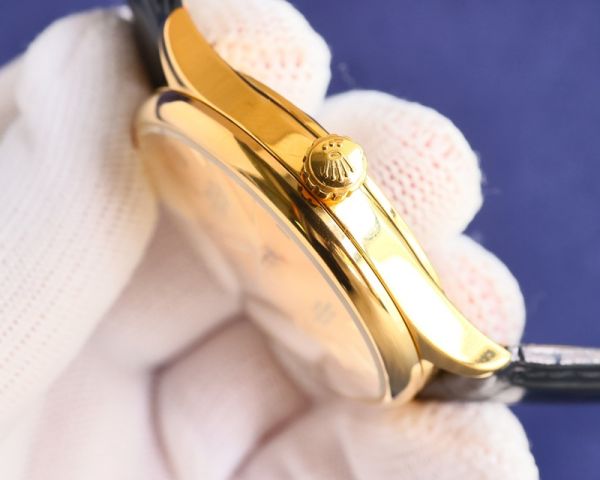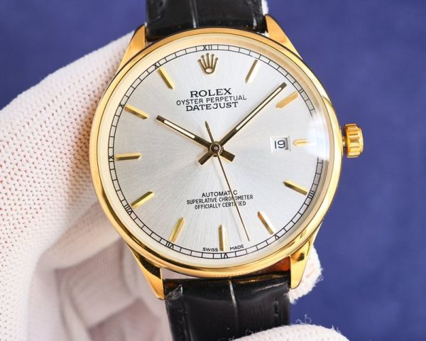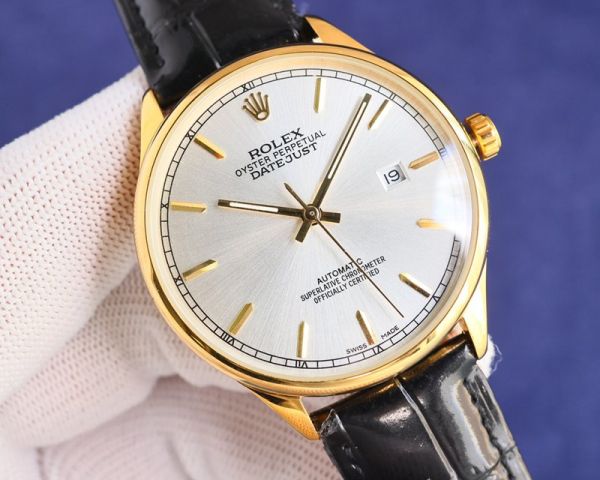 Best Edition With Imported 8215 Movement Replica Rolex Datejust Yellow Gold with White/Gold Dial Black Italian Leather Band Watch