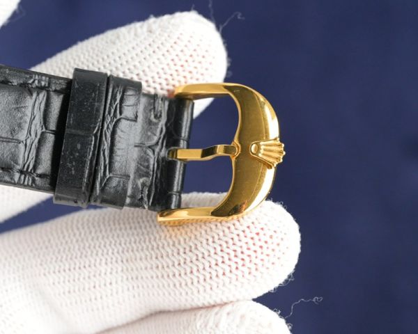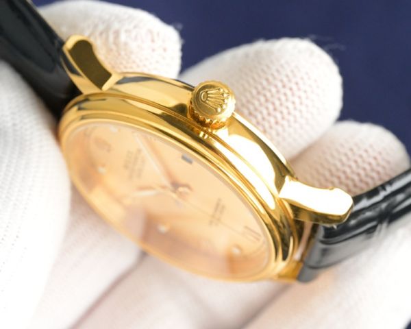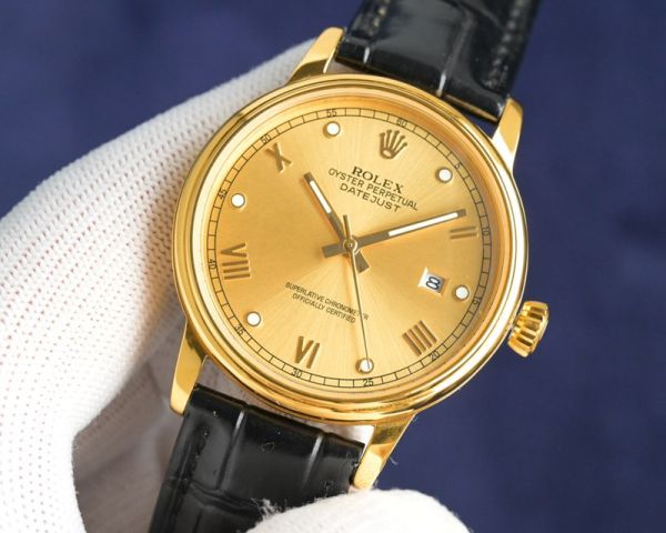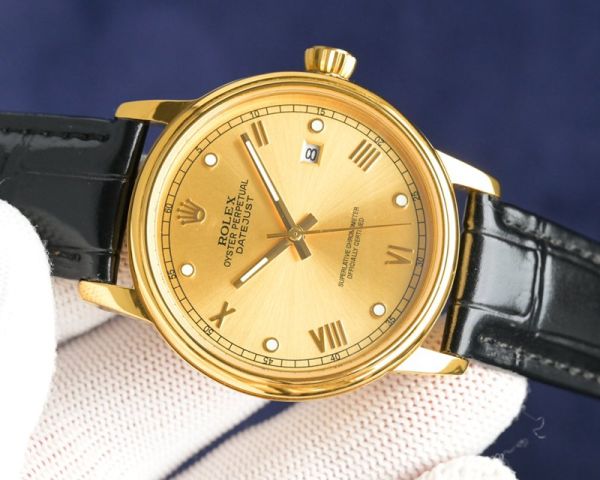 Best Edition With Imported 8215 Movement Replica Rolex Datejust Yellow Gold with White/Gold Dial Black Italian Calfskin Leather Band Watch