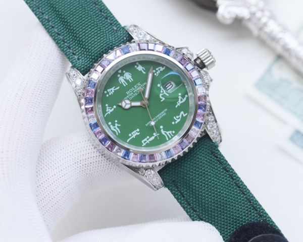 Rolex Datejust Miyota 9015 Movement 40mm Green/White Face Lume Watch