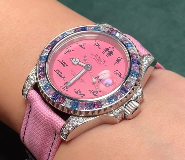 Rolex Datejust 9015 Movement 40mm Rainbow Diamonds Bezel Pink Watch