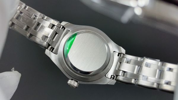Rolex crown logo micro etched at 6 o'clock on the crystal.