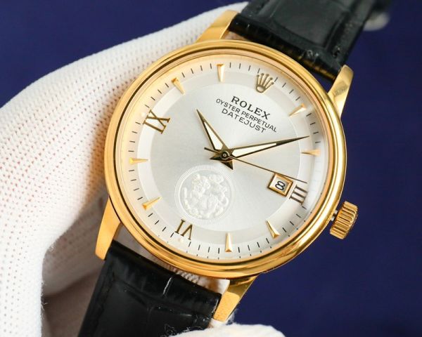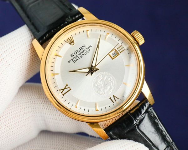 Best Edition With 8215 Movement Replica Rolex Datejust Yellow Gold with White/Gold Dial Black Italian Calfskin Leather Band Watch