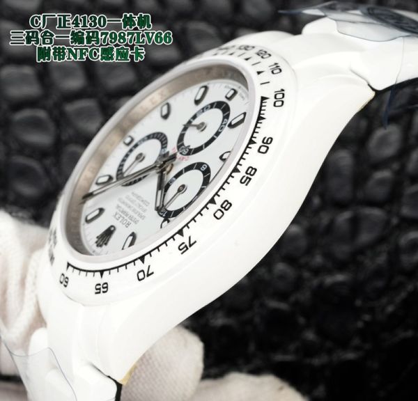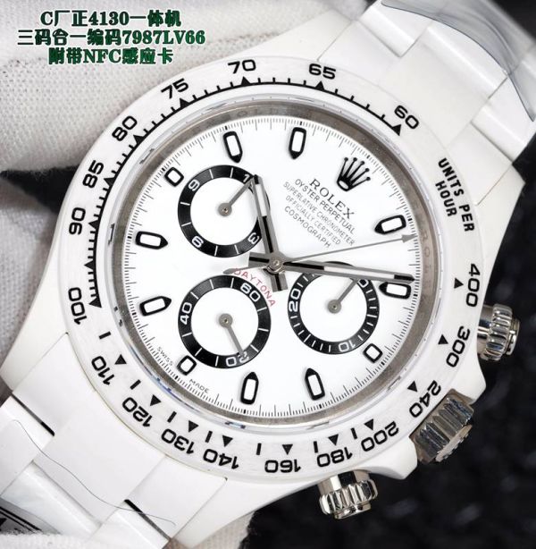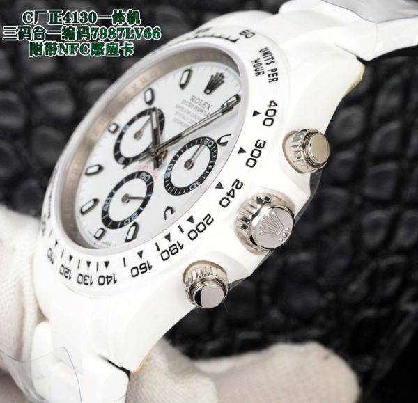 Clean Factory Best Edition With 4130 Automatic Movement Swiss Rolex Daytona Replica White Dial Chronograph Ceramics Case Watch