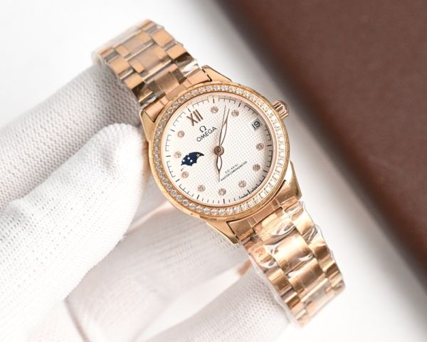 Omega Replica 38 Wessel Diamond 904L Stainless Steel Case Lady Watch