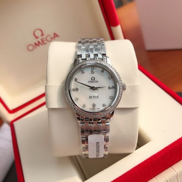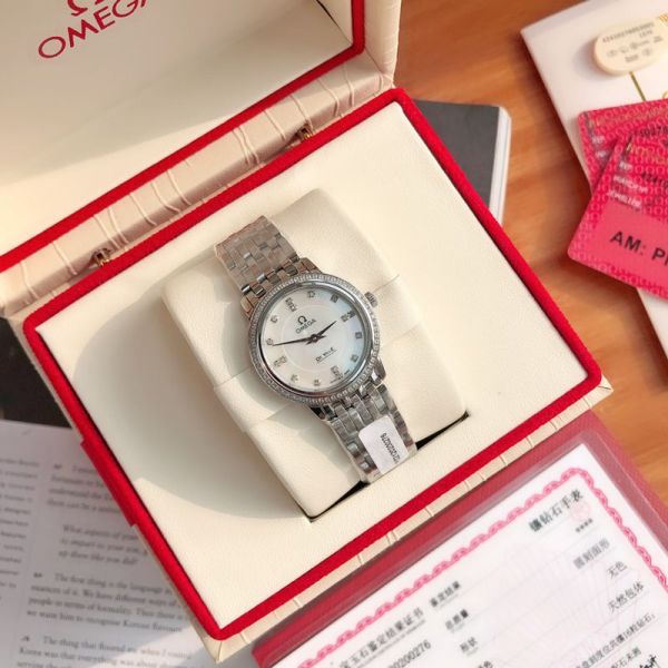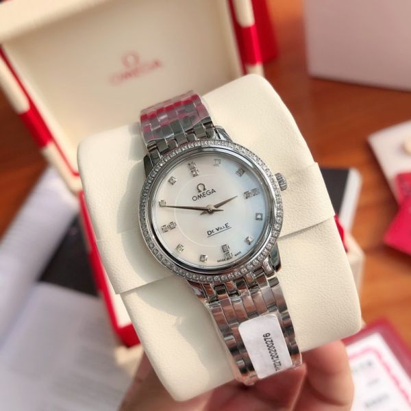 Omega De Ville 27.4MM Cal.1376 6 Real Diamonds Lady Silver Case Watch