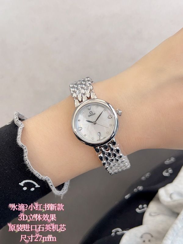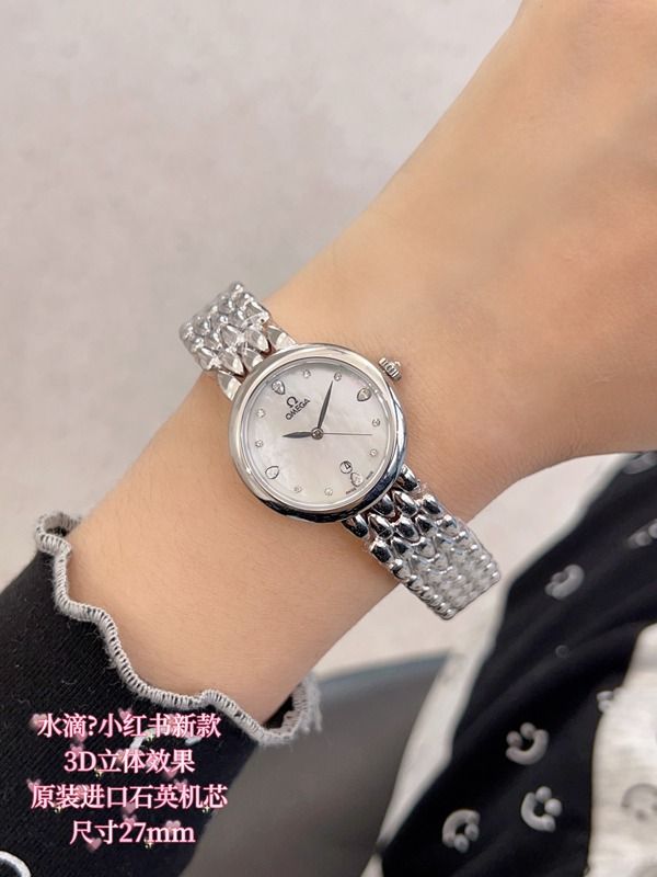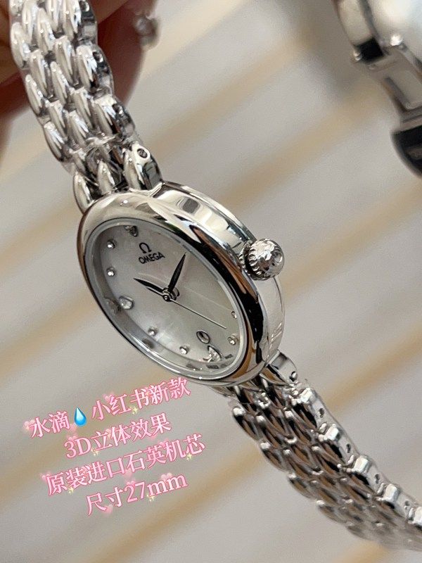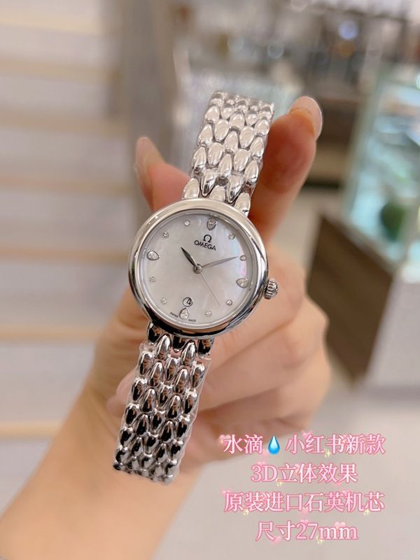 Omega 27MM Diameter Imported Quartz Movement Elegant White Dial Lady Watch