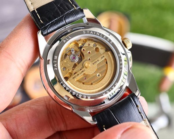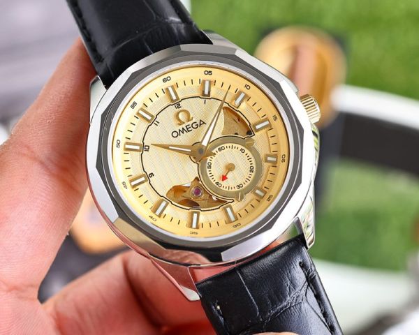Omega Stainless Steel Genuine Cowhide Leather Strap 41MM Men Replica Watch