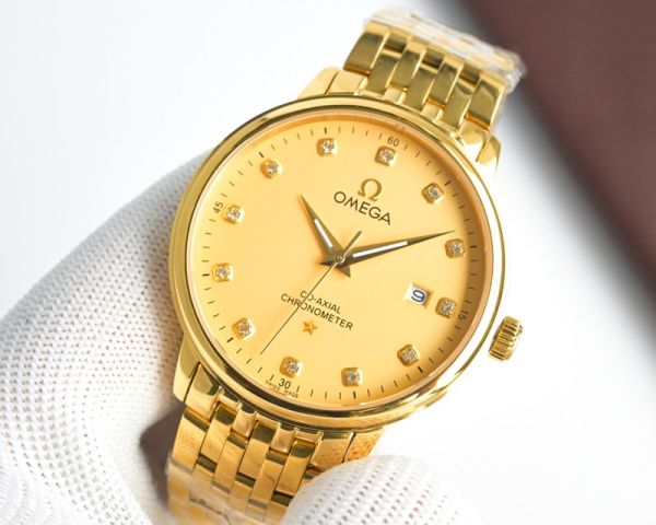 Omega 40*12mm Imported Citizen Movement 316L Steel Gold Stainless Steel Strap Men Watch