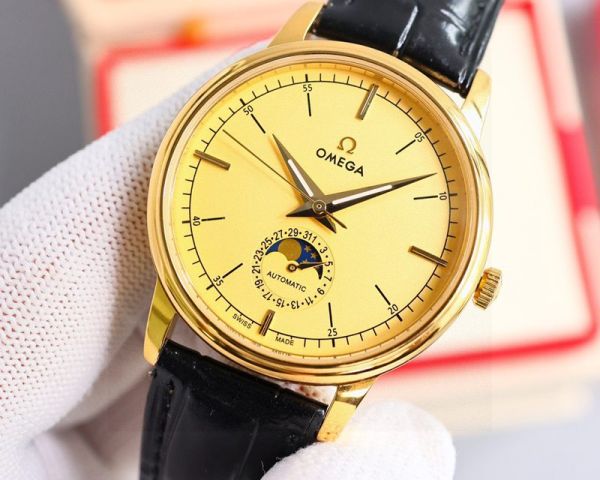 Best Edition With Swiss ETA2824 Automatic Movement Omega De Ville Italian Calfskin Leather Strap Watch