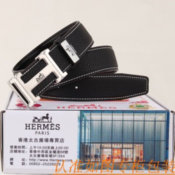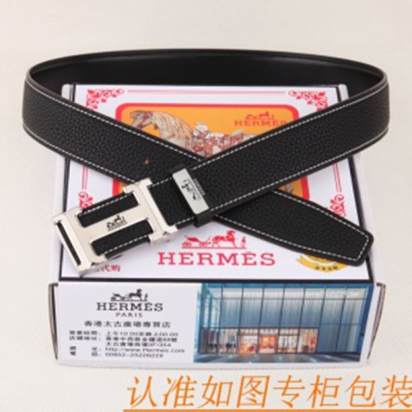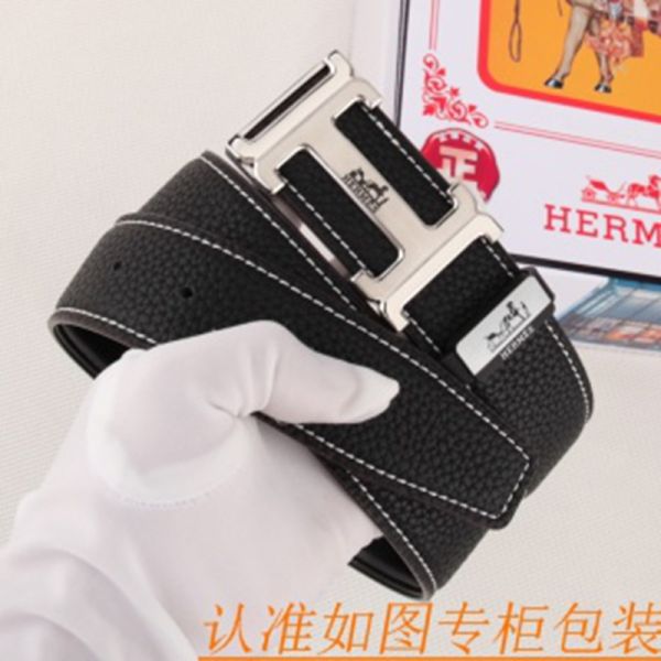 1:1  Hermes Black Leather Belt with Silver 'H' buckle  Cowhide Belt 3.8cm