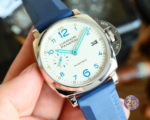 Best Edition With Automatic Movement Panerai Luminor Due White Rubber Strap Silver Case Watch
