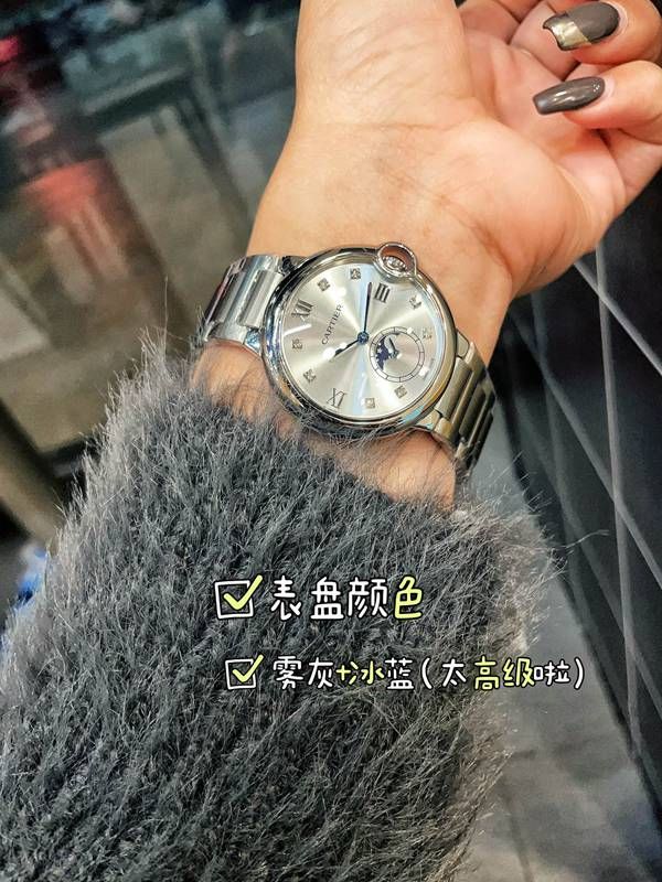 Cartier Imported Quartz Movement 36*8MM Grey+Ice Blue Dial Advanced Watch