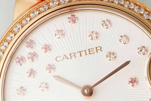 Cartier Ballon Bleu de Cartier Qixi Festival Limited Edition Watch, with an 18K gold case, a fully diamond-set bezel, a sunburst dial adorned with pink sapphires and diamonds, is exquisitely crafted.