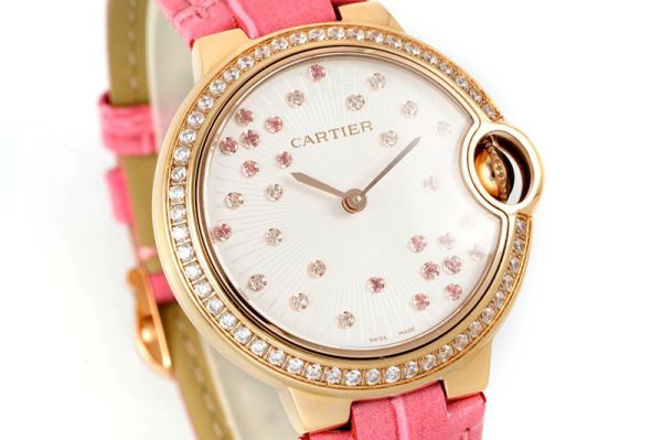 AF Factory Ballon Bleu De Cartier 33mm Swiss Quartz Movement Diamond Bezel Pink Leather Strap Watch