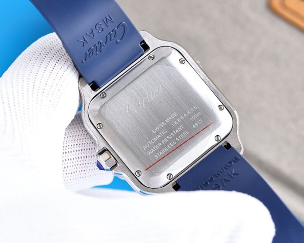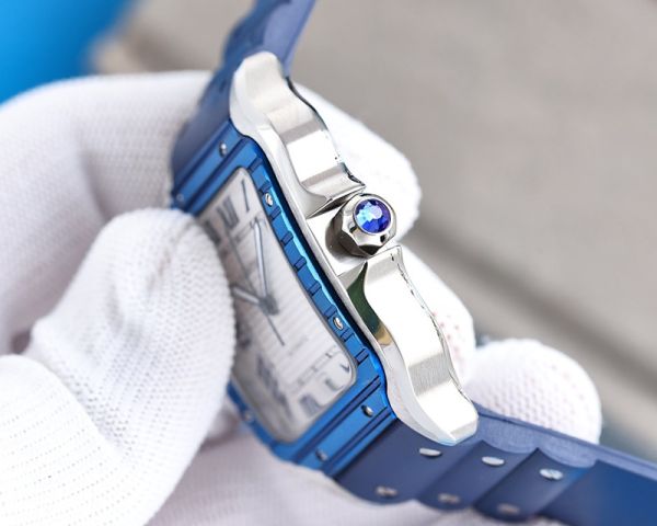 Replica Cartier Santos De Cartier Blue PVD Bezel Rubber Strap Watch