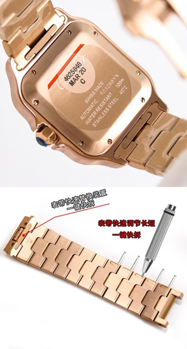 Best Edition With Swiss 9015 Automatic Movement Cartier Santos Gold/Rose Gold Bracelet Watch juste un clou cartier imitation