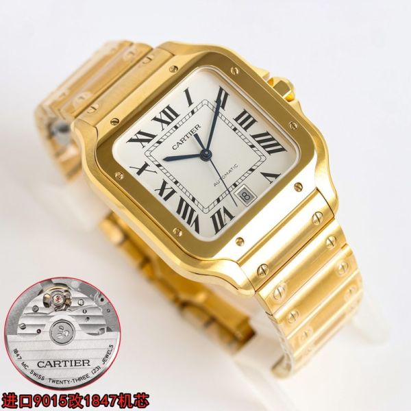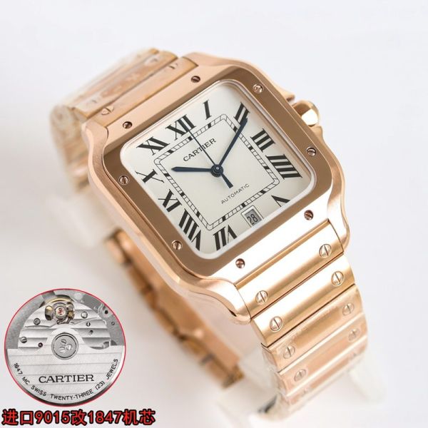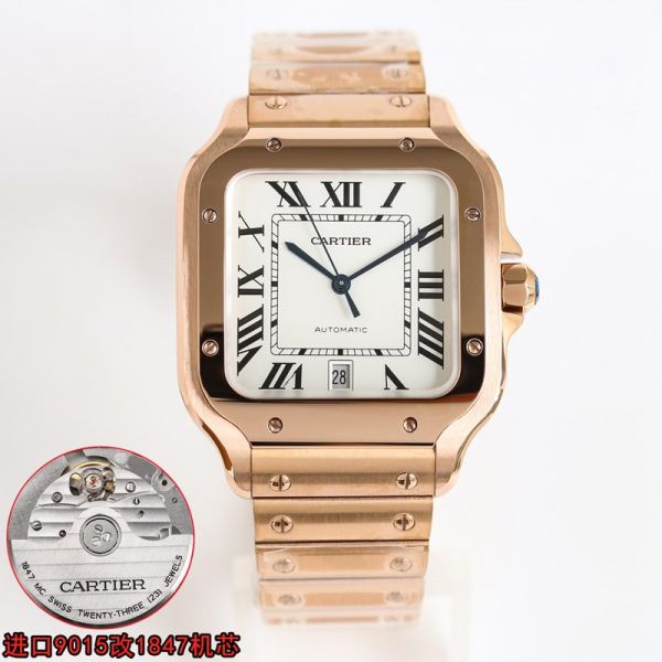 Cartier Santos 41.9*35.1mm 316L Steel 9015 Movement Gold/Rose Gold Bracelet Watch juste un clou cartier imitation