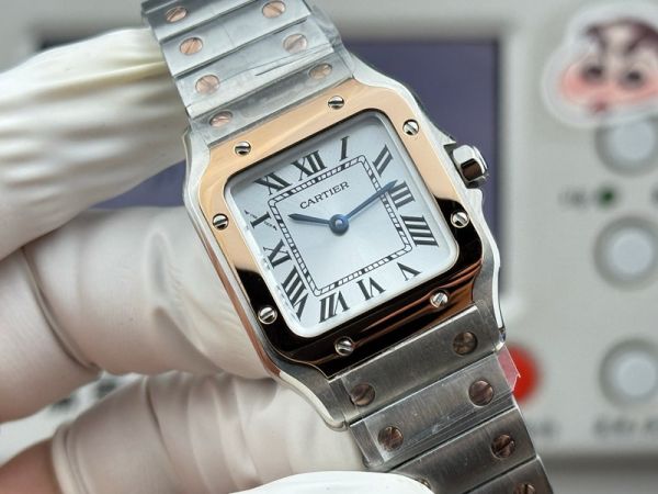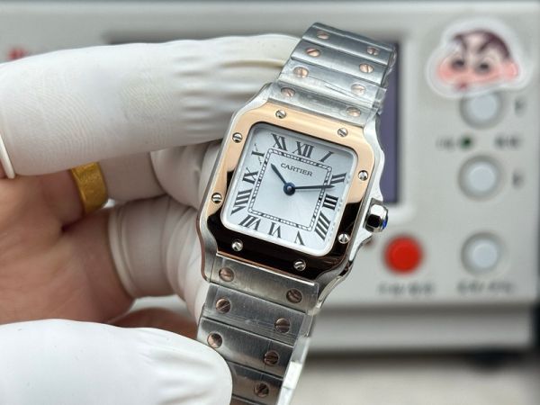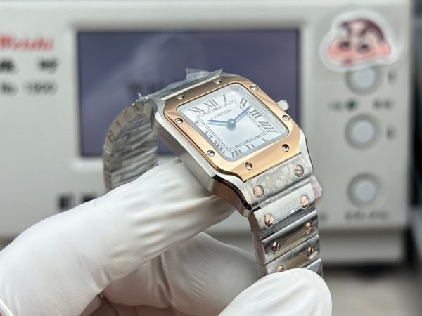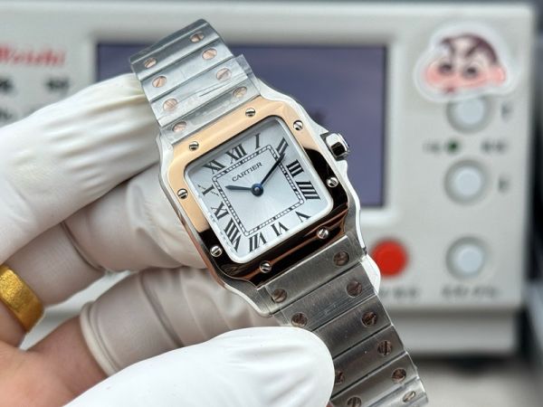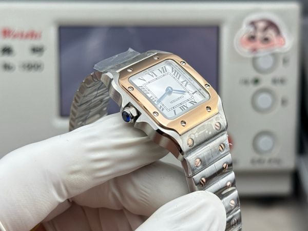Cartier Santos Mini Size 27*34.5*7.4mm Imported Quartz Movement TT RG Band White Watch