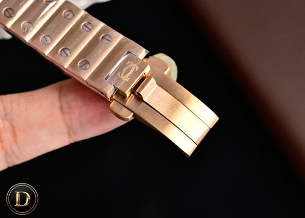 Best Edition With Swiss Quartz Movement Replica Cartier Santos White Face Rose Gold SS Strap Lady Watch