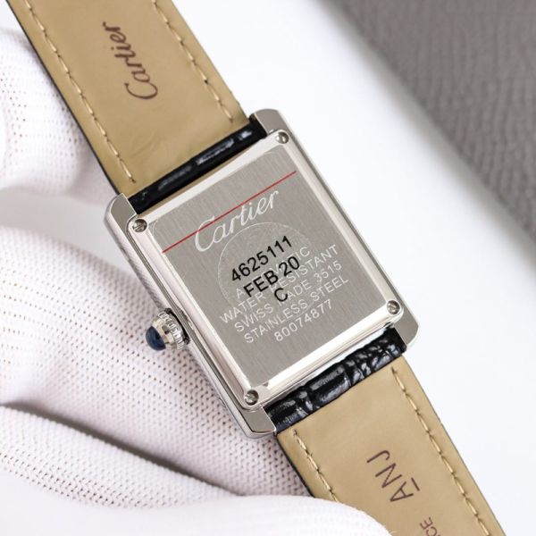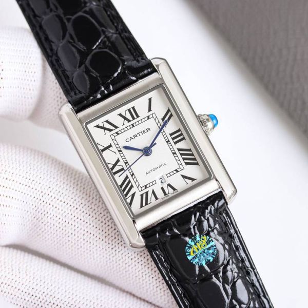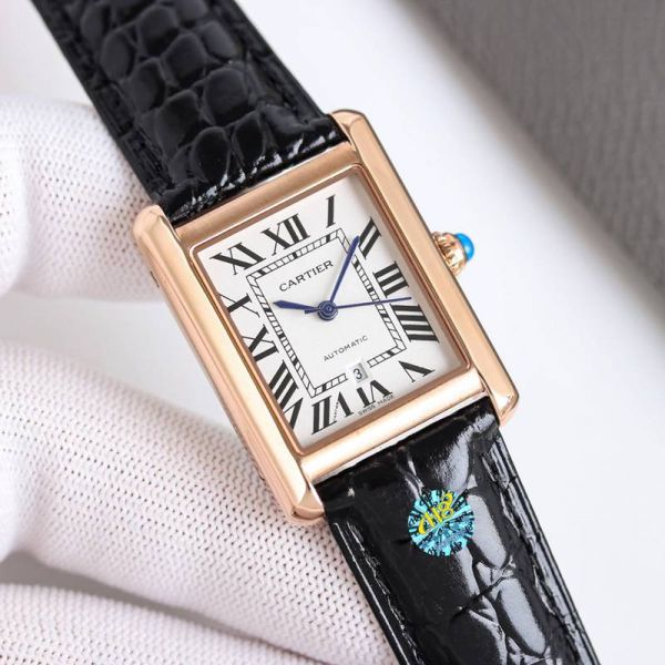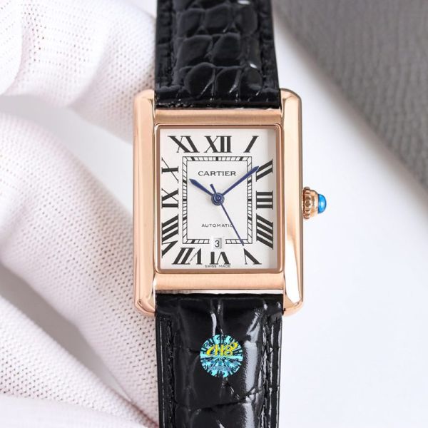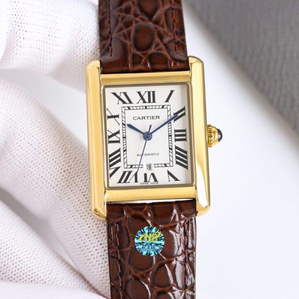 Best Edition With Automatic Movement Cartier Tank Gold Case Black/Brown Calfskin Leather Strap Watch