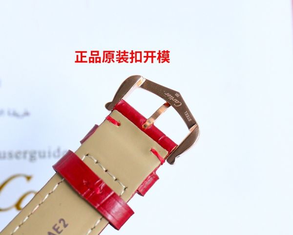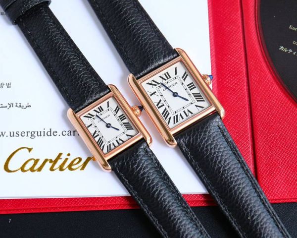 TW Factory Best Edition With 751 Quartz Movement Cartier Tank Rose Gold Case Red/Black Leather Strap Watch