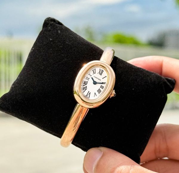Best Edition With Swiss Automatic Movement Cartier Baignoire Sapphire Glass Bracelet Watch
