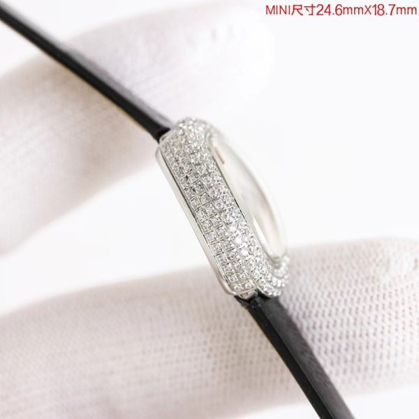 M1 Factory Cartier Mini Baignoire 24.6*18.7mm Black Face Yellow Gold Case Japan Quartz Movement Watch |