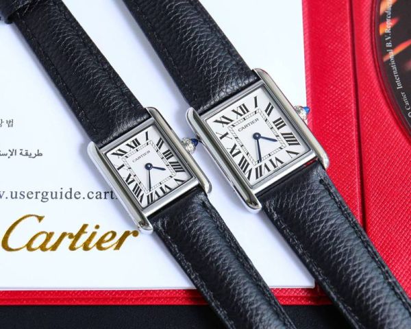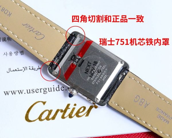 TW Factory Best Edition With 751 Quartz Movement Cartier Tank Black/Red Calfskin Leather Strap Watch