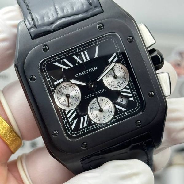 Perfect Detail Replica Cartier Santos Black Square Watch - Buy Now And Get 100% Customer Satisfaction Guaranteed.