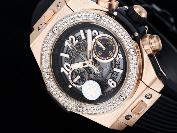 ZF Factory HUBLOT Watch Rubber Strap Hublot Big Bang Diamond Watch Unico Rose gold with diamonds Watch