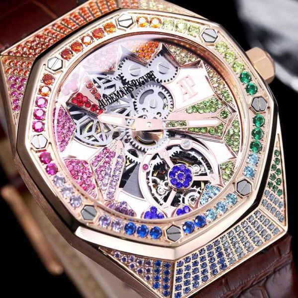 Rose Gold Rainbow Audemars Piguet Royal Oak Concept GMT Replica Watch