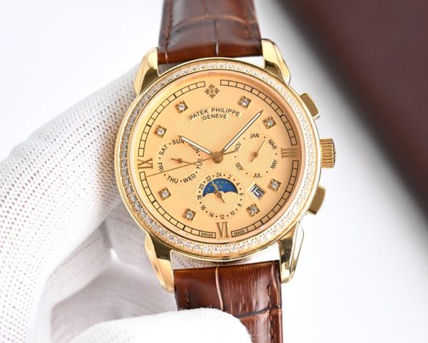 Best Edition With Swiss 9100 Automatic Movement Patek Philippe Watch Leather Strap Complications Diamond Bezel Watch