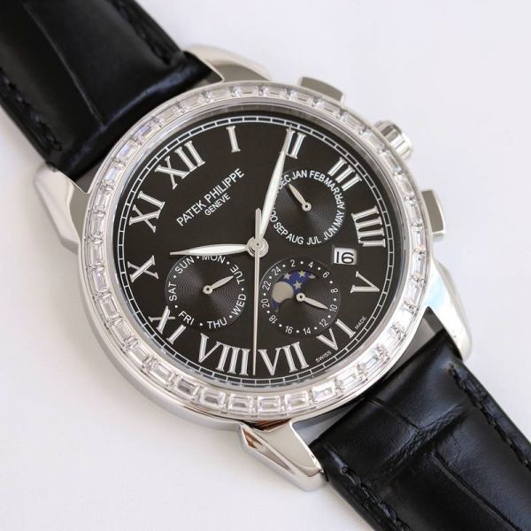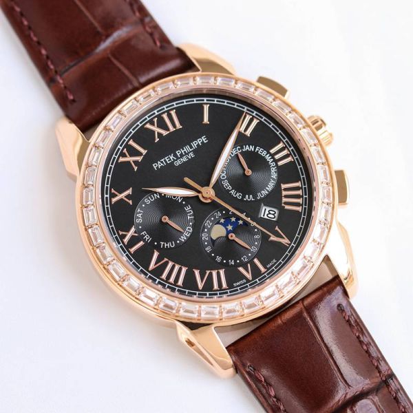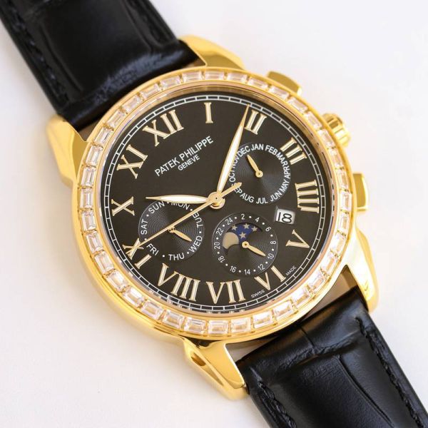 Best Edition With Swiss 9100 Automatic Movement Patek Philippe Leather strap Complications Watch