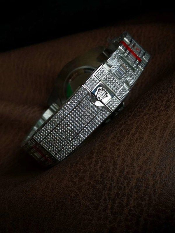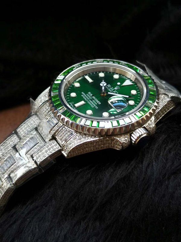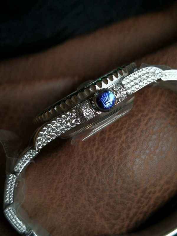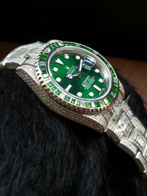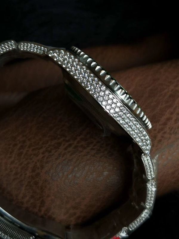 Rolex Submariner 904L Steel Iced Out 40mm Green Face/Bezel 3135 Movement Watch