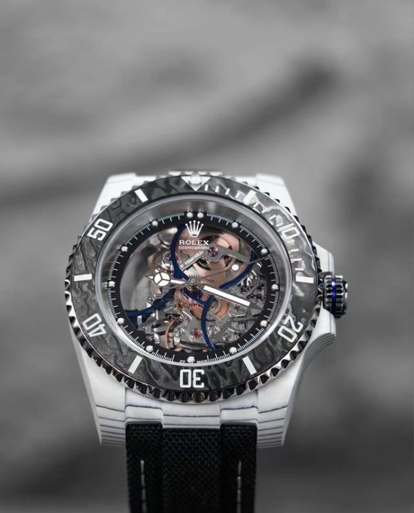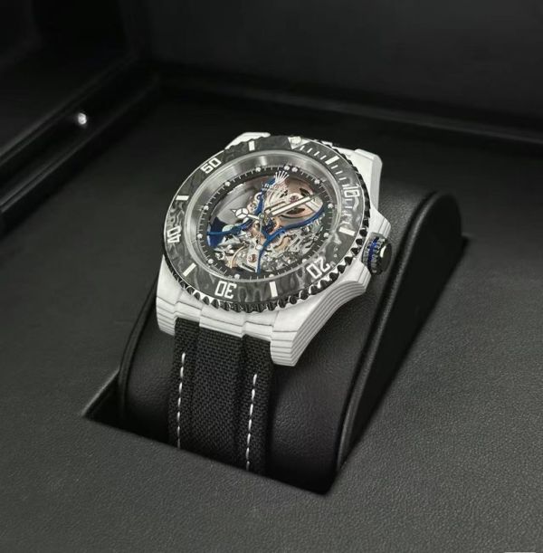 Rolex Submariner 3135 Skeleton Movement 40mm Carbon Fiber Case Fabric Band Watch