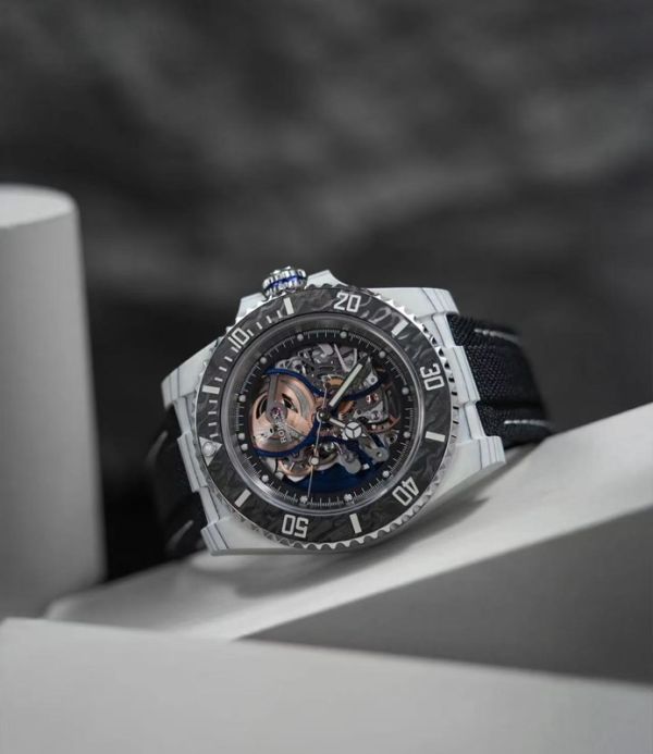 Best Edition With 3135 Skeleton Movement Replica Rolex Submariner White with Skeleton Dial Fabric Band Watch