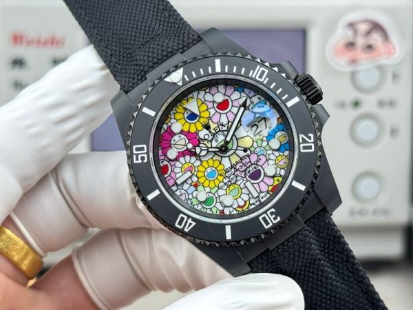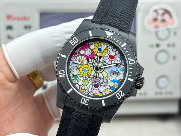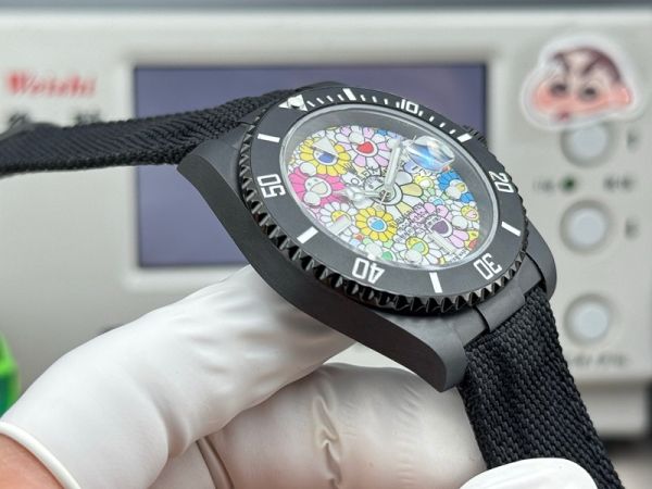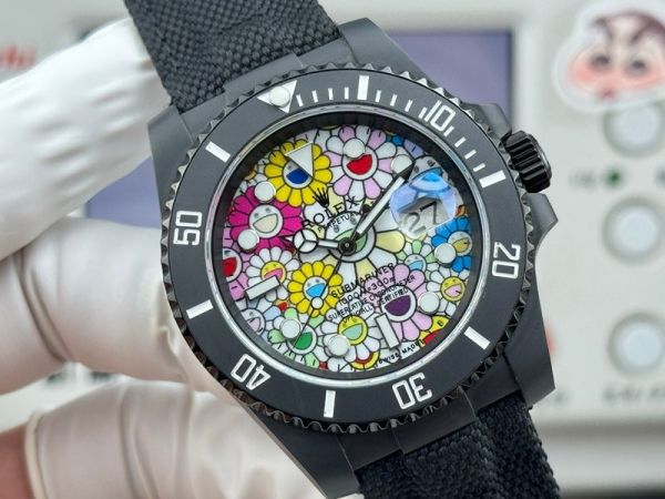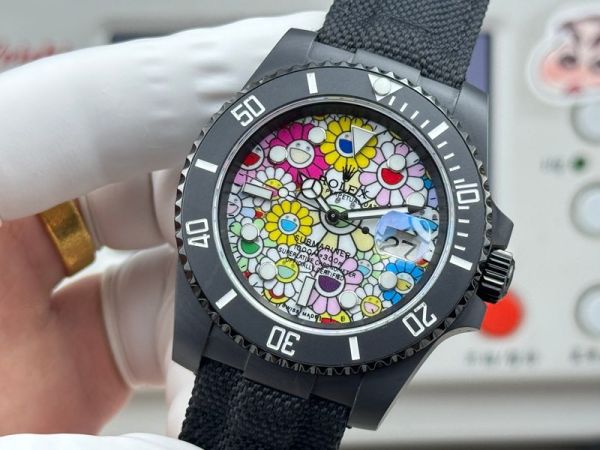 Best Edition With 3135 Movement Replica Rolex Submariner Black with Sunflower Dial Black Canvas Band Watch