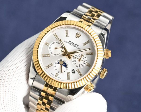 Best Edition With Imported 9100 Movement Replica Rolex Oyster Perpetual Yellow Gold/White Gold with White/Gold Dial YG/TT Yellow Gold Jubillee Band Watch