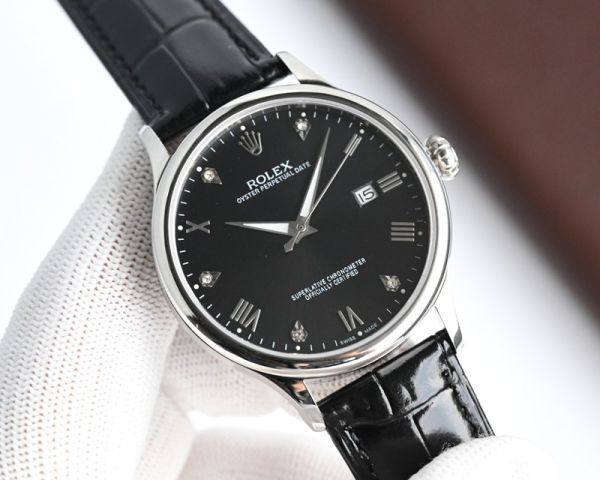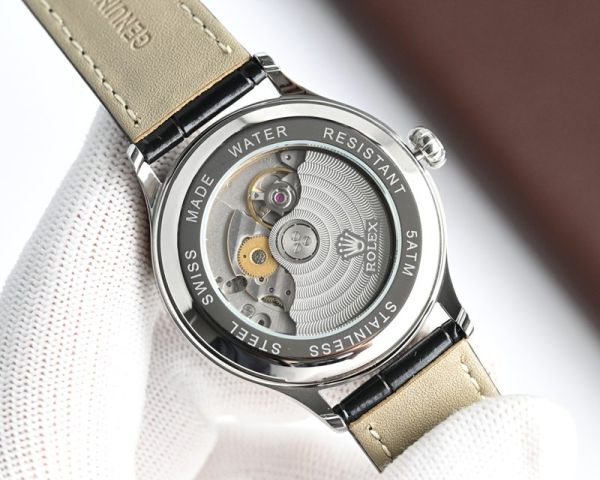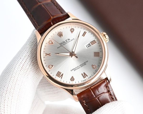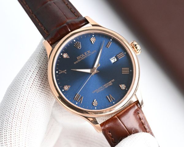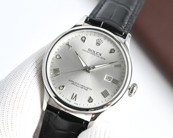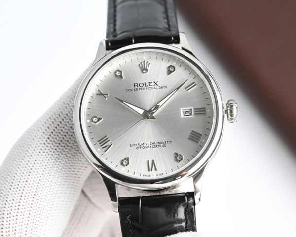 Best Edition With 9015 Movement Replica Rolex Oyster Perpetual Date RG/WG with White/Black/Blue Dial Brown/Black Italian Leather Band Watch