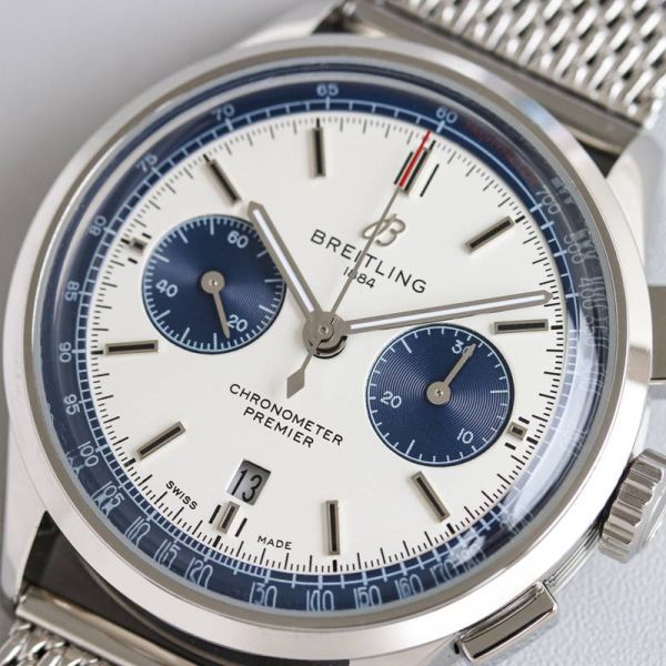 TW Factory Best Edition With 7750 Automatic Movement Breitling Premier White Dial Silver Stainless Steel Strap Chronograph Watch