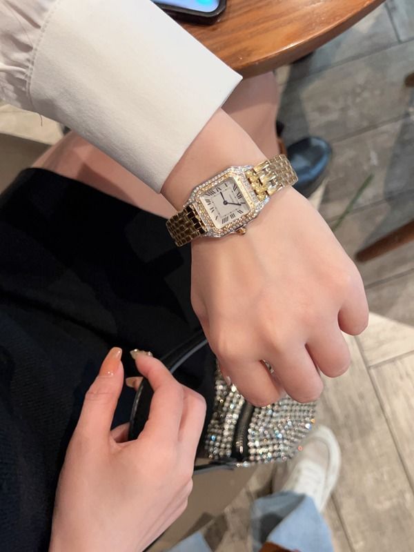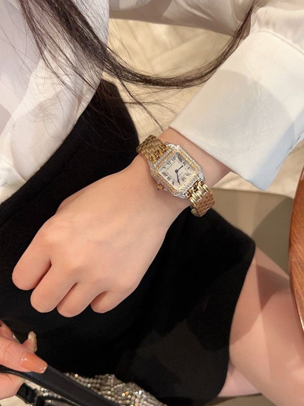 Best Edition With Quartz Movement Cartier Panthere Square Gold Stainless Steel Strap Watch