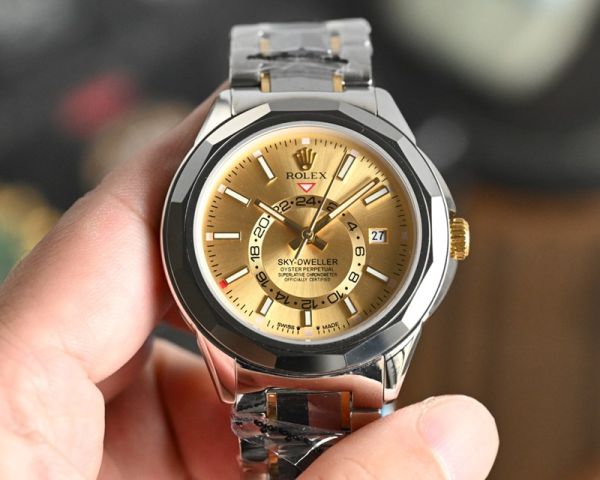 AR Factory Rolex Sky-Dweller 42*14.5mm 316L Oyster Steel Gold Oyster Band 9002 Movement Watch |